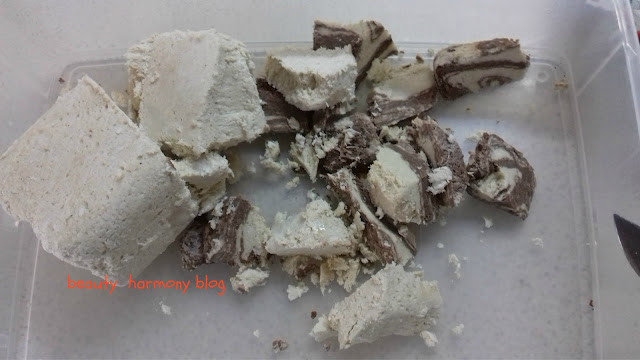 Κόβουμε τον χαλβά σε ακανόνιστα κομμάτια.
